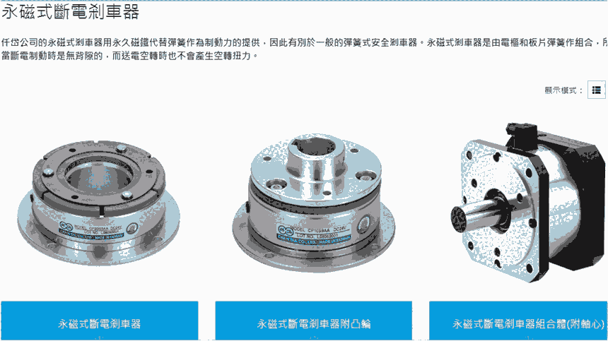仟岱公司的永磁式剎車器是用永久磁鐵代替彈簧作為制動力的提供,因此有別于一般的彈簧式安全剎車器。永磁式剎車器是由電樞和板片彈簧作組合,所以當斷電制動時是無背隙的,而送電空轉(zhuǎn)時也不會產(chǎn)生空轉(zhuǎn)扭力。